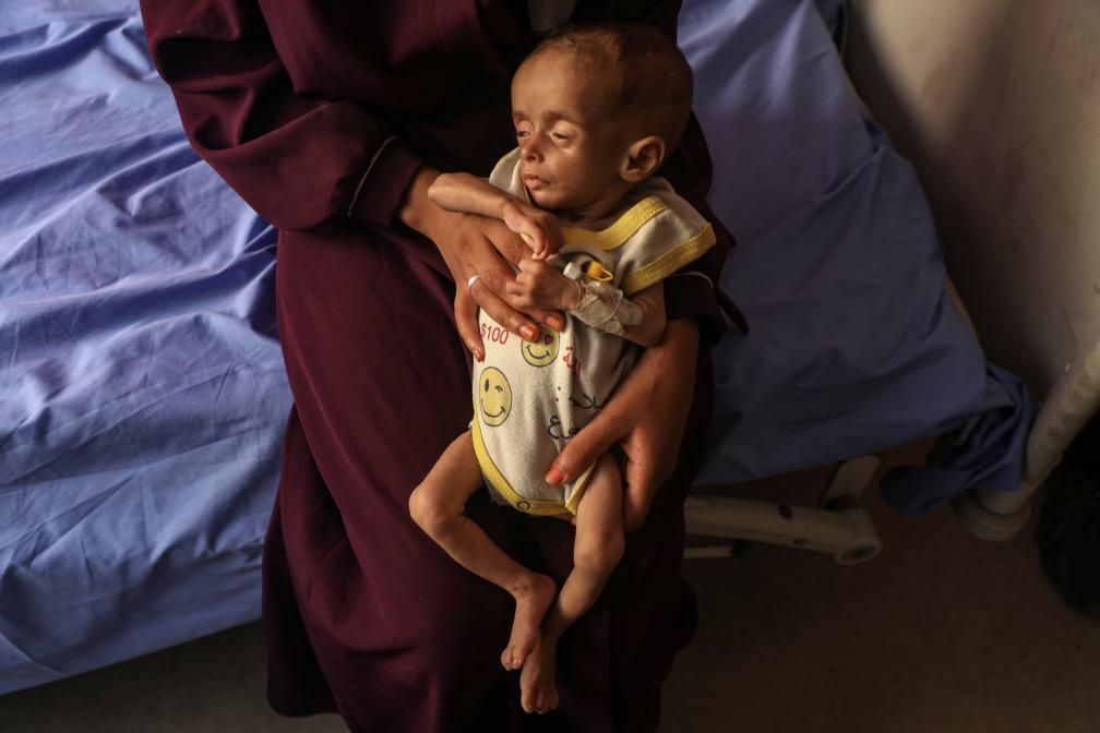 这是7月23日在加沙城一所医院里拍摄的营养不良的儿童。新华社发(里泽克·阿卜杜勒贾瓦德摄)