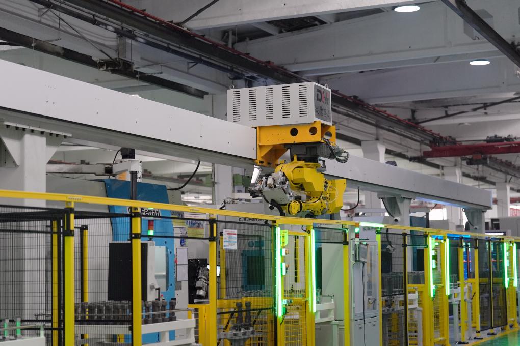 在哈尔滨东安汽车动力股份有限公司生产车间,智能生产设备对产品进行加工与组装作业(7月24日摄)。
