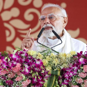 印度总理莫迪8月2日在印度北方邦城市瓦拉纳西的一个集会上发表讲话。(图片来自莫迪办公室网站)