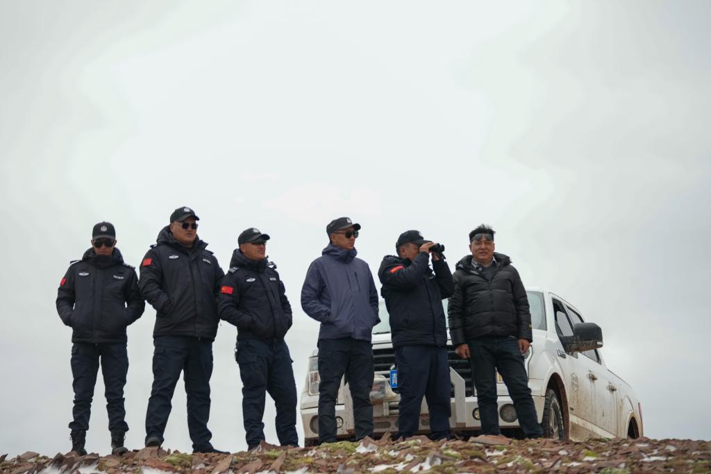 巡山队员在可可西里卓乃湖附近巡护。新华社记者杜笑微摄
