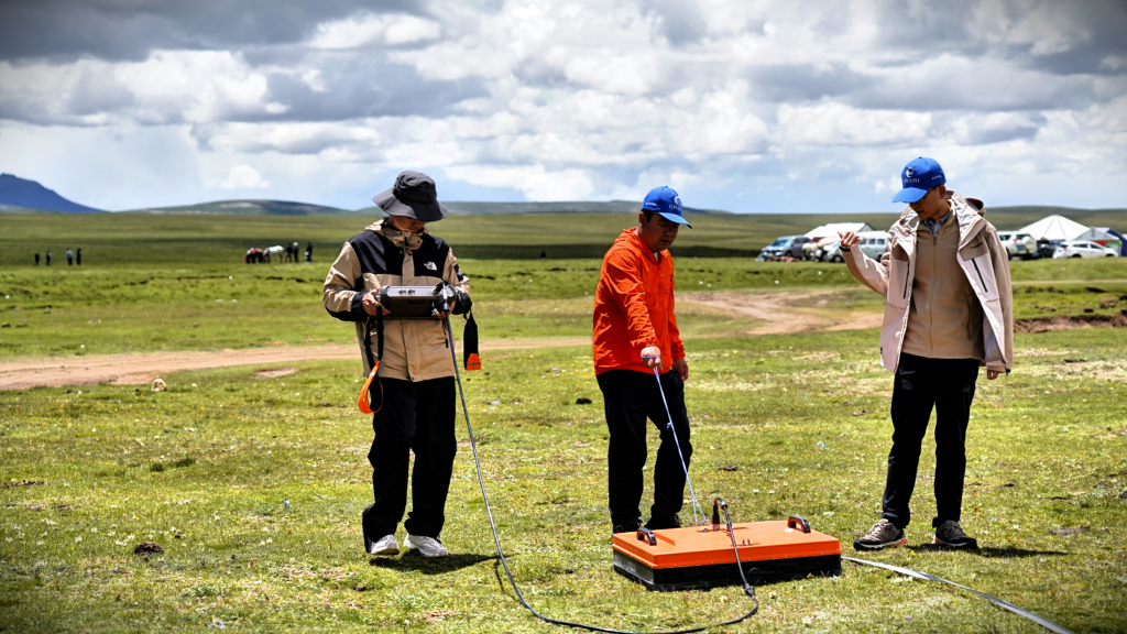 来自长江科学院岩土重点实验室的研究人员范越正在和队友使用探地雷达,对湿地边的土地反复扫描。“探地雷达相当于眼睛,通过电磁波的反射,可以透视地下水和冻土的位置与深度,为解译气候变化对长江源区‘地下水—冻土循环演变’的影响机制提供原始数据。”范越说。