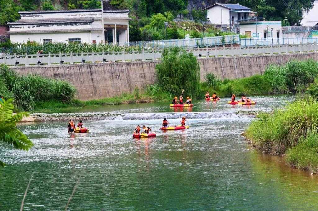 游客在巫山县平河乡一处平缓河道体验漂流项目。(巫山县融媒体中心供图)
