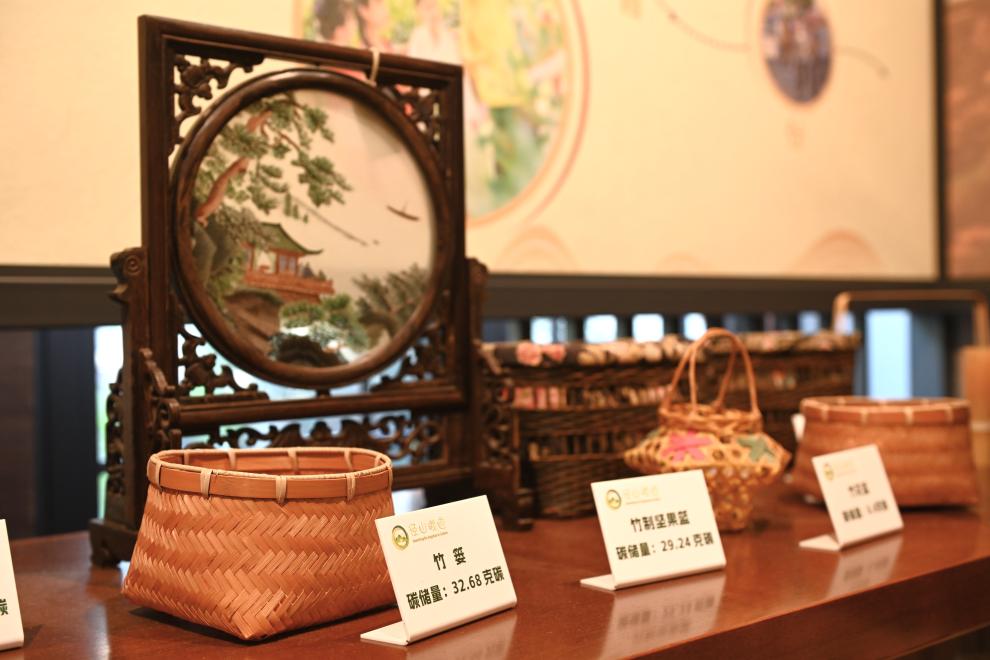 这是8月5日在浙江省杭州市余杭区径山村拍摄的“以竹代塑”文创产品。新华社记者 毛竹 摄