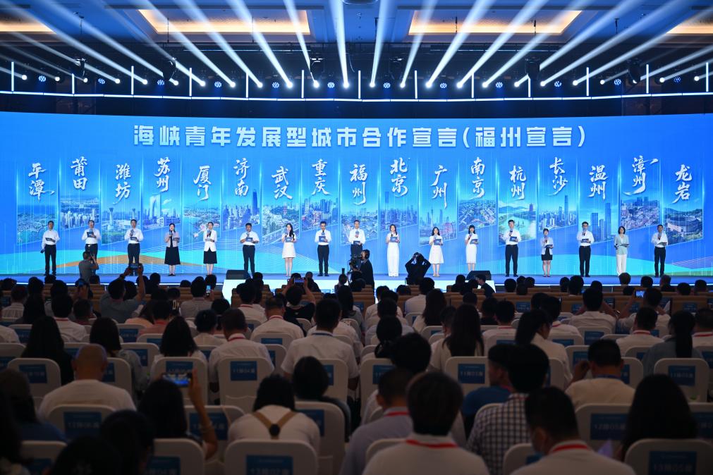 8月6日,在海峡青年连心汇活动现场,两岸青年代表宣读《海峡青年发展型城市合作宣言(福州宣言)》。新华社记者 林善传 摄
