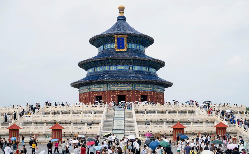 8月5日,游客在位于北京的天坛公园参观。新华社记者 张涛 摄
