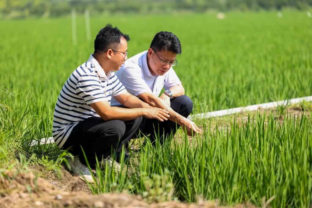 一年四季,耕、种、管、收。在周而复始中,何杨阳深切地感受着土地与节令。立秋前夕的水稻,即将拔节抽穗,田间管理至为重要。何杨阳带着我们登上田头农机房的屋顶,只见阡陌纵横,一道道水渠连成绵延不绝的江南水系。微风拂过,阵阵稻香扑面而来,让人忍不住深呼吸。