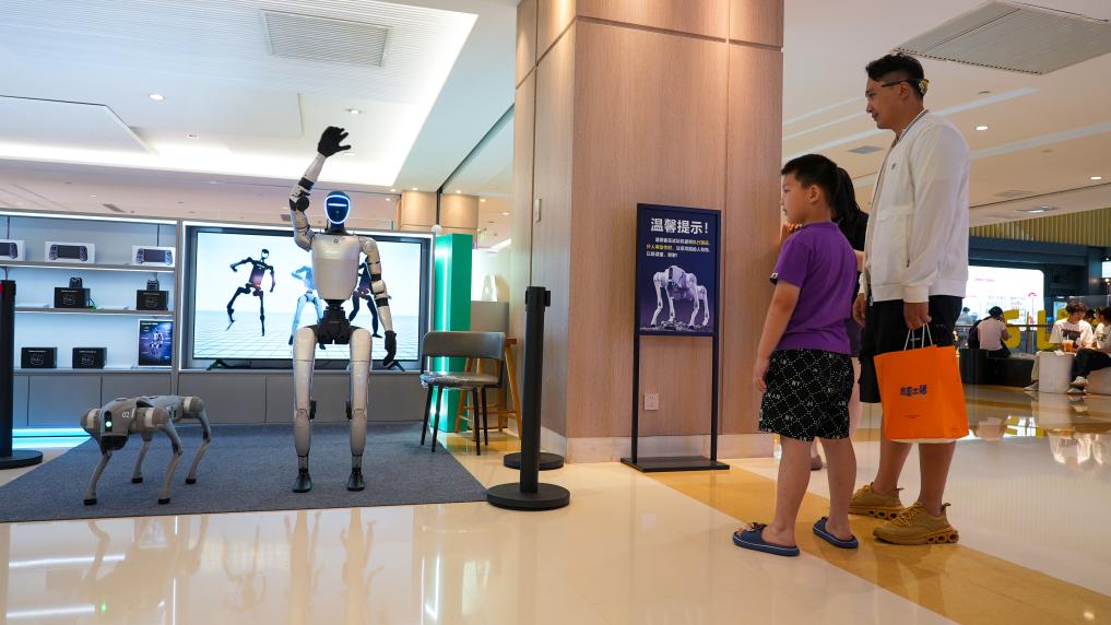 顾客在丹尼斯大卫城等待操作智能机器人和机器狗。新华社记者刘振坤 摄