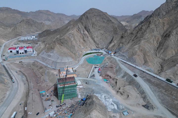 这是5月20日拍摄的甘肃玉门昌马120万千瓦抽水蓄能电站项目建设现场,该电站为国内第一座大型地面厂房抽水蓄能电站。新华社记者 张智敏 摄