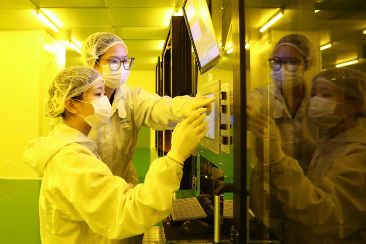 2024年10月22日,在甘肃省兰州新区的甘肃金川兰新电子科技有限公司,技术人员正在操作曝光机进行集成电路引线框架曝光作业。新华社记者 郎兵兵 摄