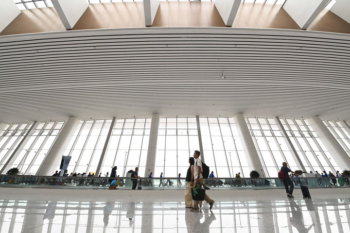 8月5日,在兰州中川国际机场T3航站楼,旅客前往登机口。新华社记者 范培珅 摄