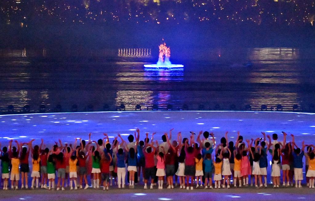 当世运会历史上第一支主火炬在湖中点燃,熊熊火焰从水中喷薄而出。水火相生,这是科技创新的突破,更是思维焕新的跨越。