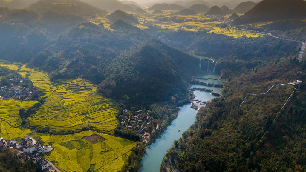 这是2025年3月10日拍摄的云南省曲靖市罗平九龙瀑布群景色(无人机照片)。新华社记者 彭奕凯 摄