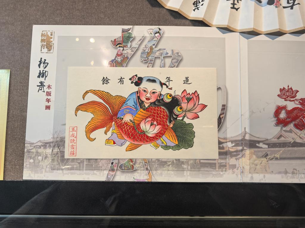 《莲年有余》年画作品及文创产品。新华社记者 邓寒思 摄