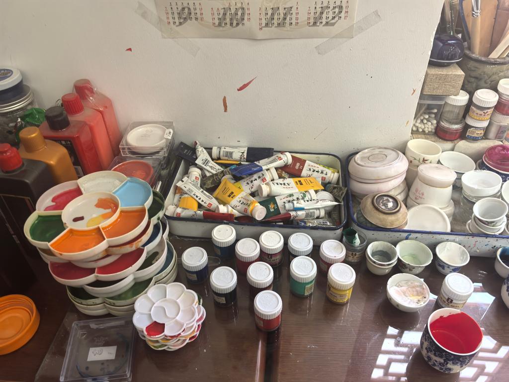 玉成号年画坊内的工作台。新华社记者 邓寒思 摄