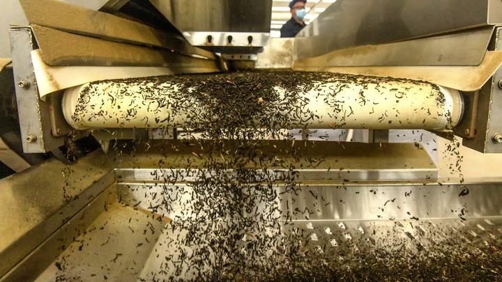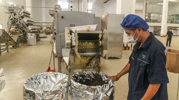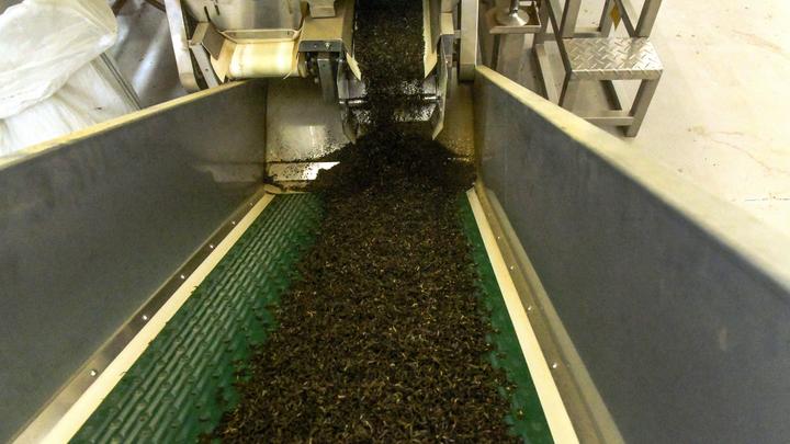 在广西中肯茶业有限公司拍摄的生产线上的茉莉花茶(7月31日摄)。