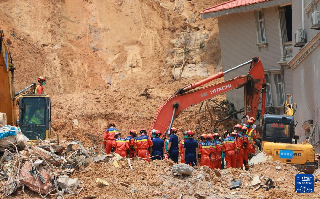 8月8日,救援人员在广州市白云区山体垮塌现场开展救援。 新华社记者 王瑞平 摄