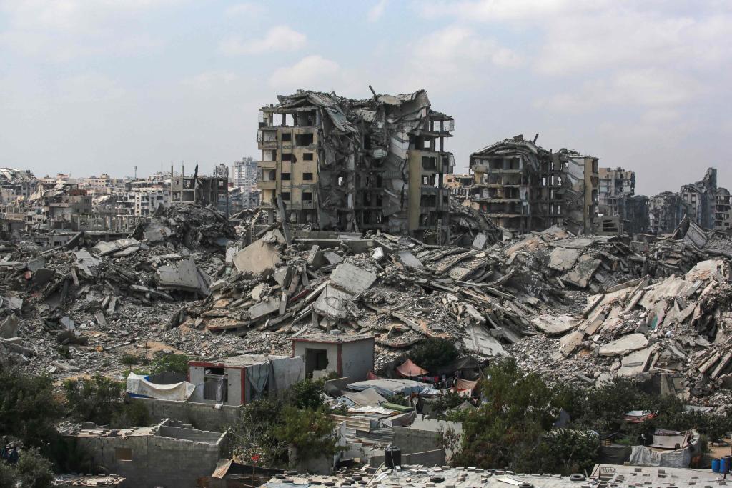 这是8月8日拍摄的加沙城的帐篷以及损毁的建筑。新华社/法新