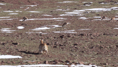 下午三点钟,高原的太阳开始有点暖意,正是藏羚羊觅食的高峰。饿了一夜的藏羚羊,这边一群,那边一群,像芝麻一般,撒满了卓乃湖畔的坡梁山岗。