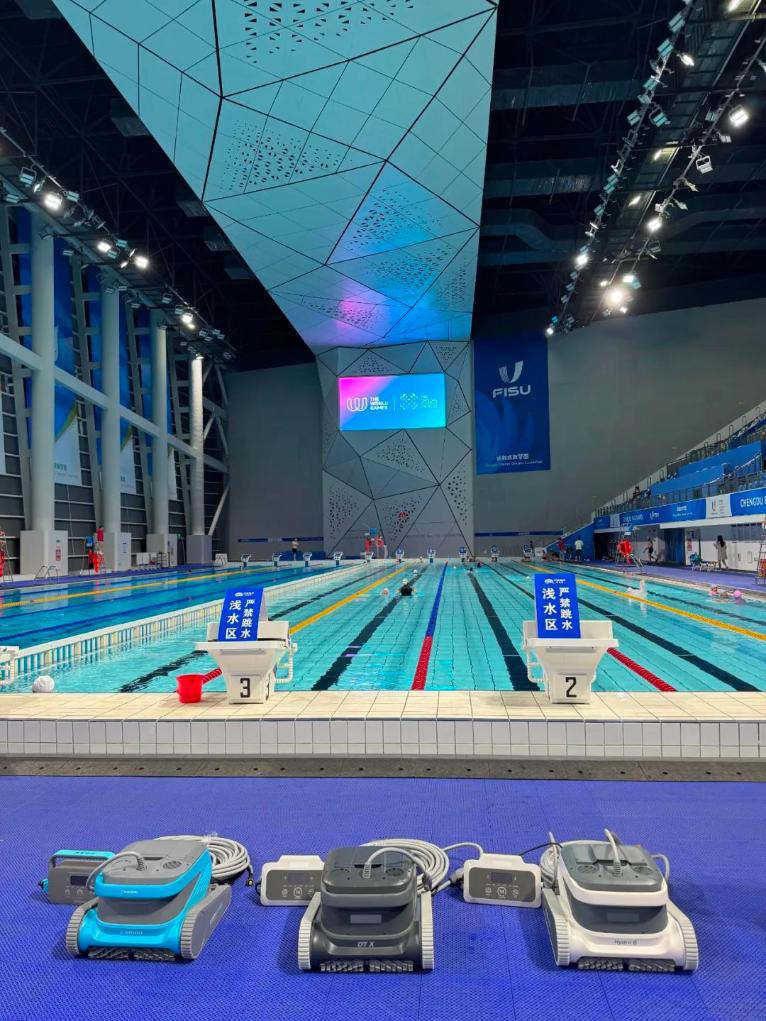 “专业竞赛泳池对水质的要求很高。基础过滤系统虽然能拦截大部分大颗粒杂质,但在持续的水流循环冲击下,极微小的砂粒或碎屑仍可能进入池水。这些肉眼难辨的微粒会随着时间的累积影响水质。”研发这款机器人的企业相关负责人杨晓阳说,“我们的设备凭借抗压电机技术,可以用双倍吸力强力吸除这些微小颗粒和有机残留,同时通过设定夜间定时清洁程序,让机器人自主完成池底、池壁及水线区域的全面清洁。”
