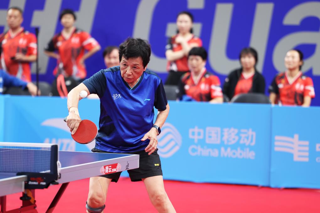 前四盘双方战成2:2,上海队的沃霞芬在决胜盘登场。今年77岁的她是第三度参加全运会,也是此次赛事年龄最大的女运动员。