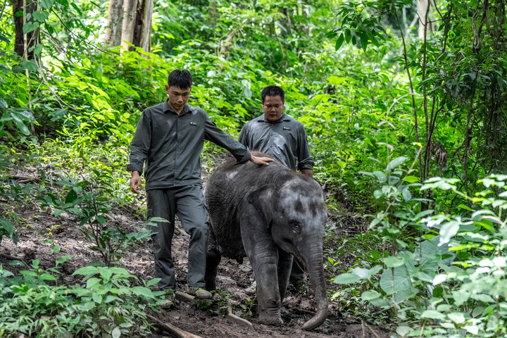 顶着30多摄氏度的高温,终日和雨林里的蚂蟥、蚊虫为伴,“象爸爸”们日复一日地带着收容的大象,到森林里进行野化训练,只为有朝一日能帮助它们最终重返自然,这是所有“象爸爸”们的心愿。