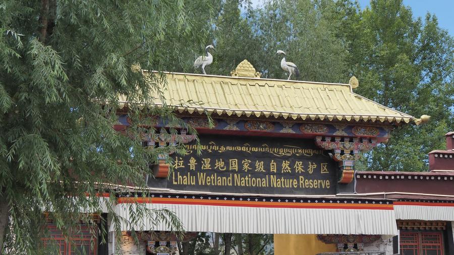 绿树掩映下的拉鲁湿地国家级自然保护区南门。新华社记者 黄智琪 摄