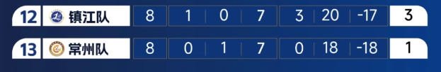 零进球的常州队和七连败的镇江队目前排名倒数第一、第二,可谓难兄难弟