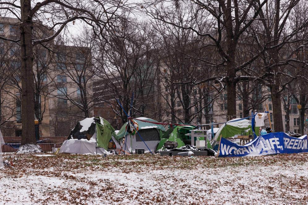 2024年1月15日,在美国首都华盛顿,无家可归者的帐篷被积雪覆盖。新华社发(阿伦摄)