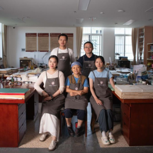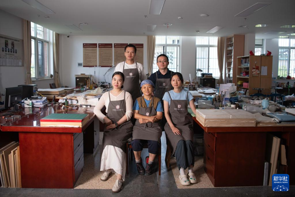 6月17日,安徽省图书馆的古籍修复师们合影留念(前排从左至右依次为:耿宁、周亚寒、张文文,后排从左至右依次为:金鑫、臧春华)。