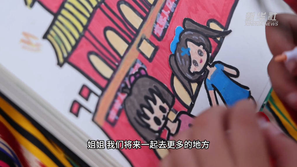 “去看世界,也让世界看见我们”是每一个“石榴籽孩子”的心愿和梦想。在长城上、天安门前、东方明珠塔下,阿米乃姆看到了画本里的梦和自己的远方。
