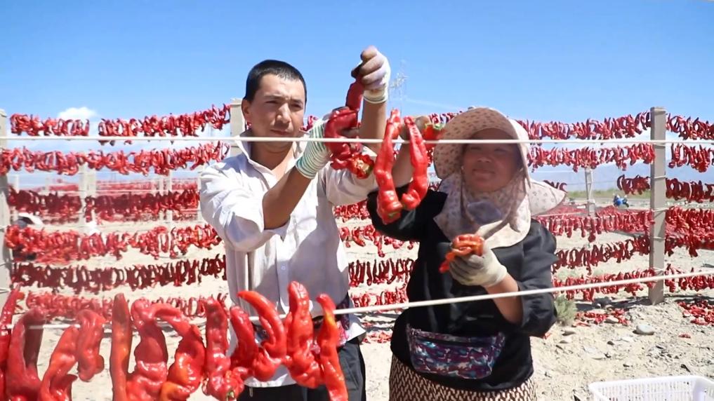 今年巴州共种植食用辣椒一万多亩,采收及晾晒工作将持续至十月底。