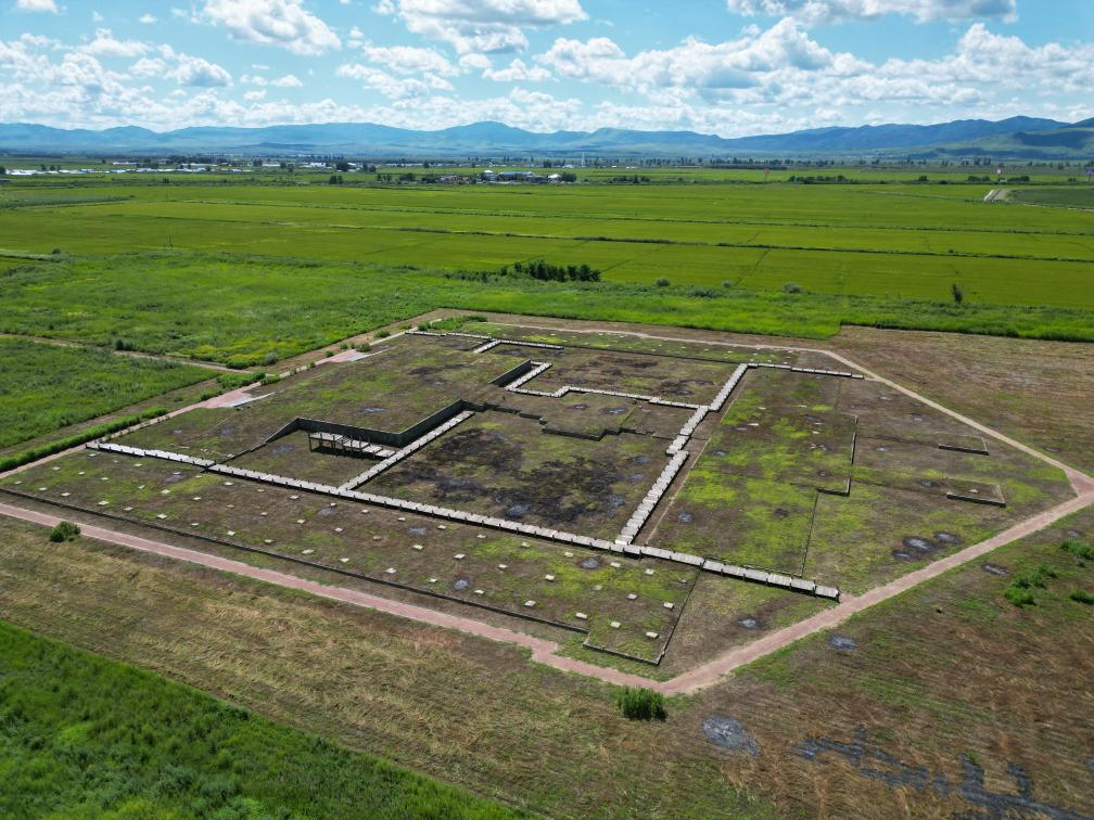 这是2025年8月8日拍摄的八连城遗址现场(无人机照片)。新华社记者 颜麟蕴 摄