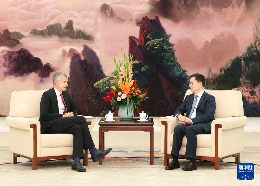 8月20日,国家副主席韩正在北京会见丹麦诺和诺德公司董事会主席龙海歌。新华社记者 庞兴雷 摄