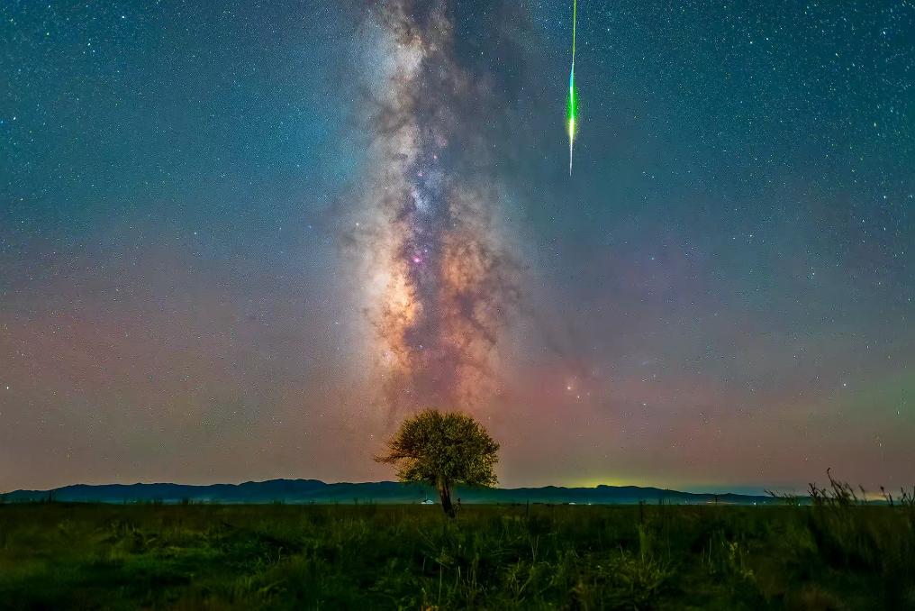 2024年8月12日,在四川阿坝藏族羌族自治州若尔盖县拍摄的银河与流星同框。(蒋涛 摄)