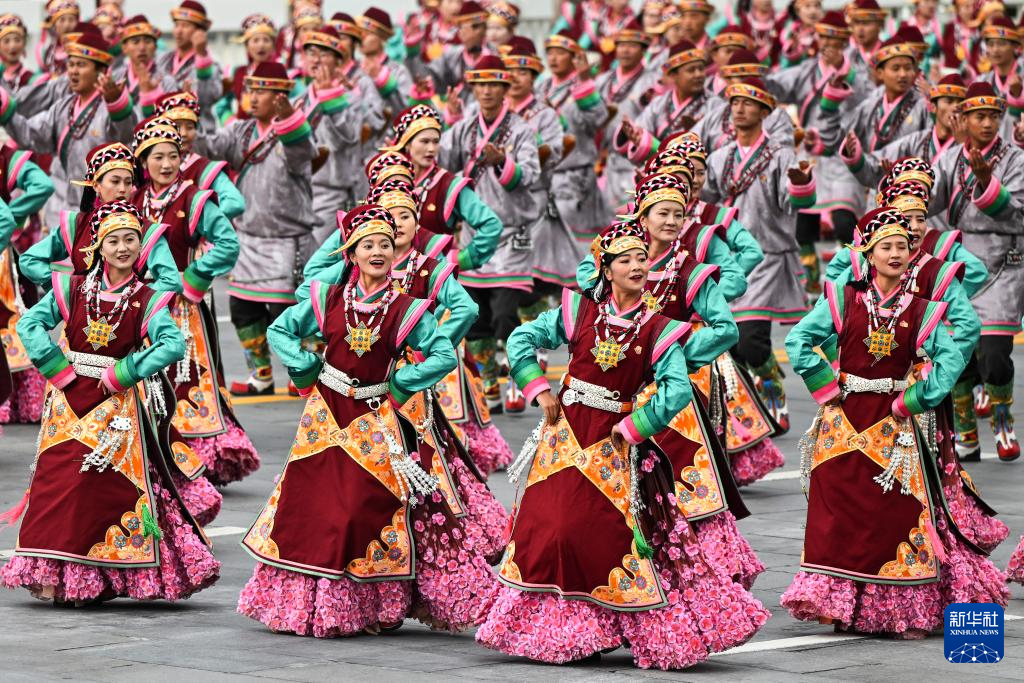 8月21日上午,西藏各族各界干部群众约2万人欢聚拉萨市布达拉宫广场,热烈庆祝西藏自治区成立60周年。这是游行队伍通过布达拉宫广场。