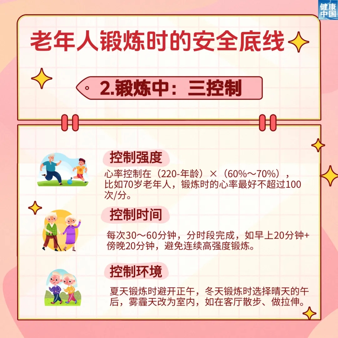 患有高血压或心脑血管疾病的老年人:避免憋气动作,如搬重物、引体向上,憋气时胸腔压力增高,回心血量减少,可引起脑供血不足,易发生头晕目眩甚至昏厥;晨起高血压也是心脑血管事件高发的重要危险因素,建议患有这类疾病的老年人上午10时后再锻炼。