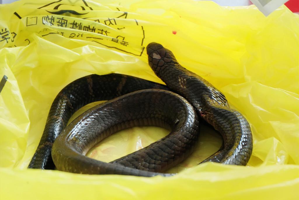 咬伤患者的眼镜王蛇。新华社发