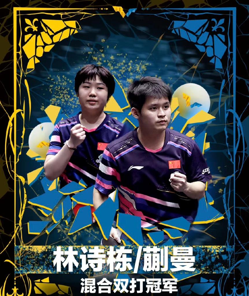 混双决赛赛场,林诗栋联手蒯曼以3:0完胜韩国组合林钟勋/申裕斌,摘得桂冠。
