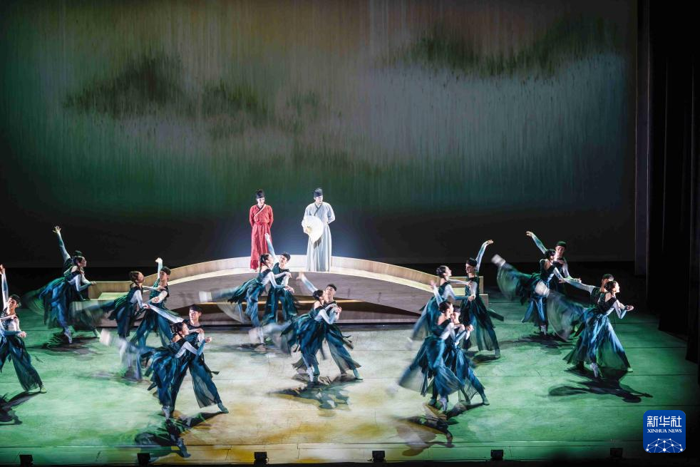 8月22日,在美国纽约,演员在林肯中心大卫·寇克剧院表演芭蕾舞剧《梁山伯与祝英台》。新华社发(周焕新摄)