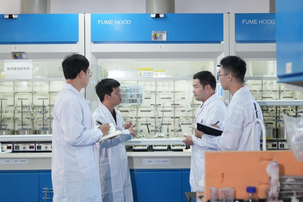 海南大学科研人员在实验室进行科研探讨。新华社发