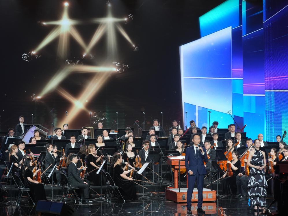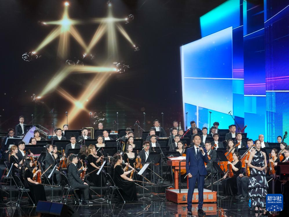 8月23日在吉林长春拍摄的第二十届中国长春电影节开幕式暨长影成立80周年交响音乐会现场。新华社记者 张楠 摄