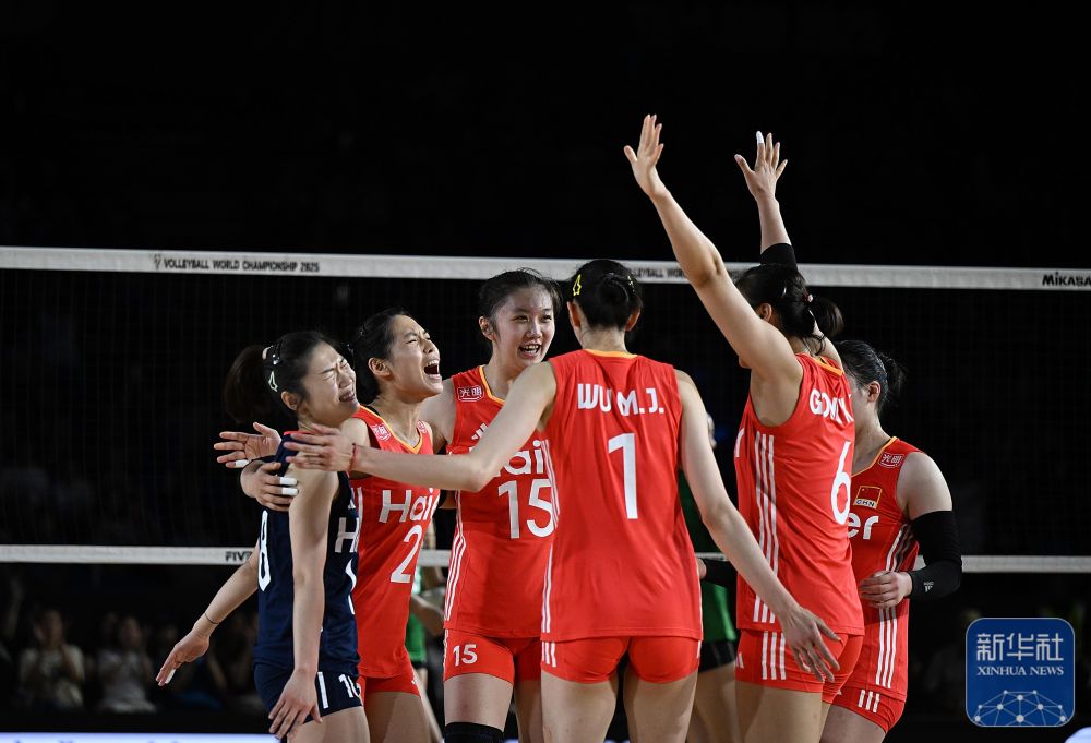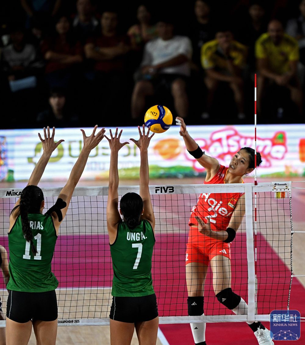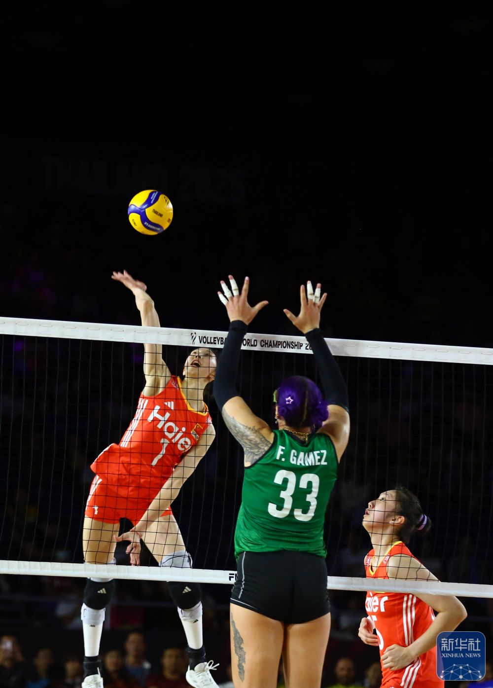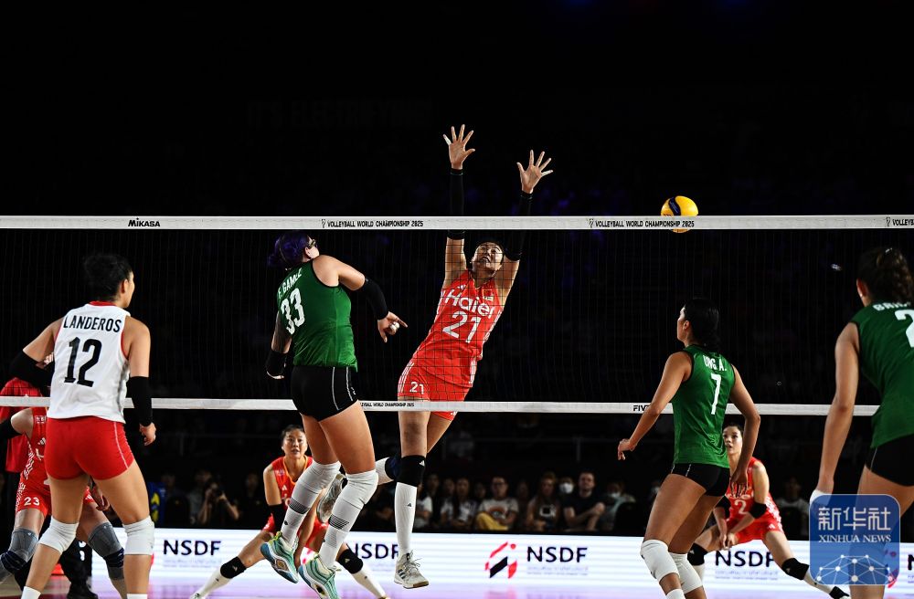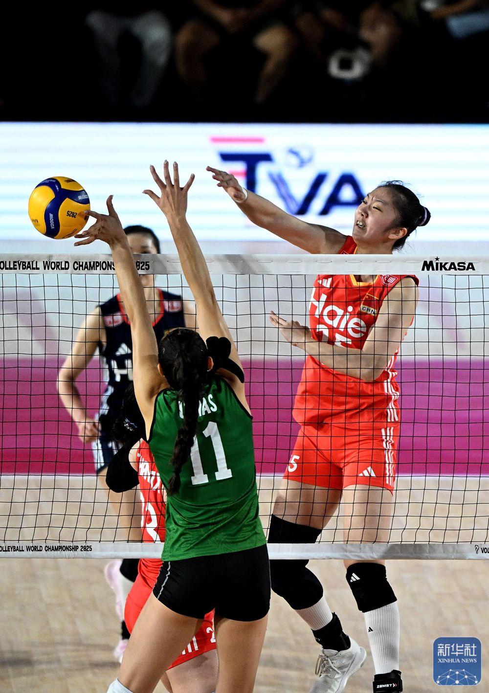 8月23日,在泰国清迈举行的2025年世界女排锦标赛F组比赛中,中国队3比1战胜墨西哥队。