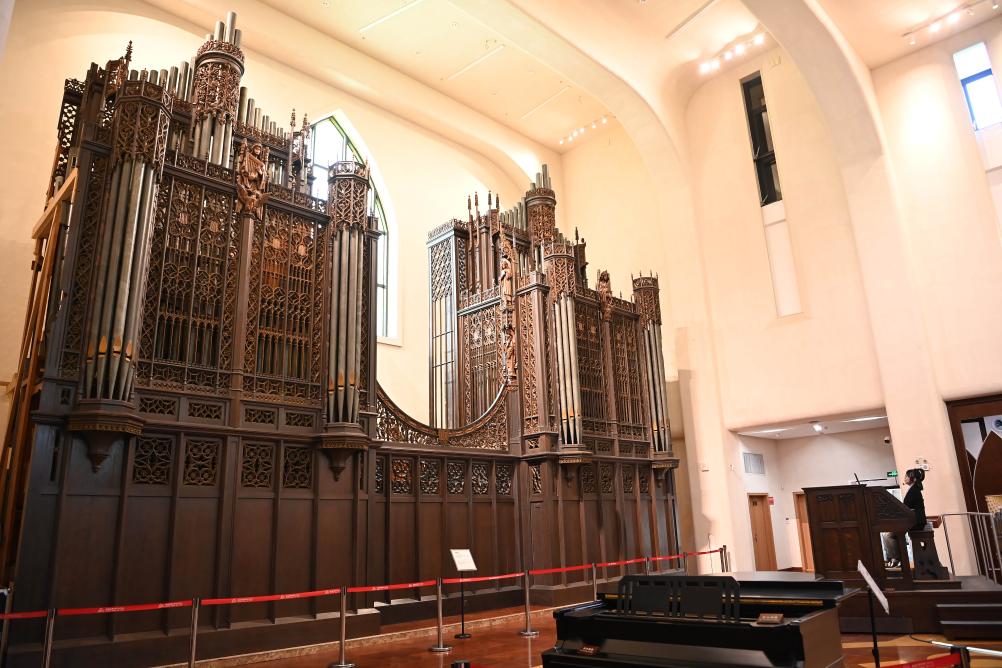8月23日,鼓浪屿文旅中心的工作人员在管风琴艺术中心演奏目前亚洲最大的管风琴。