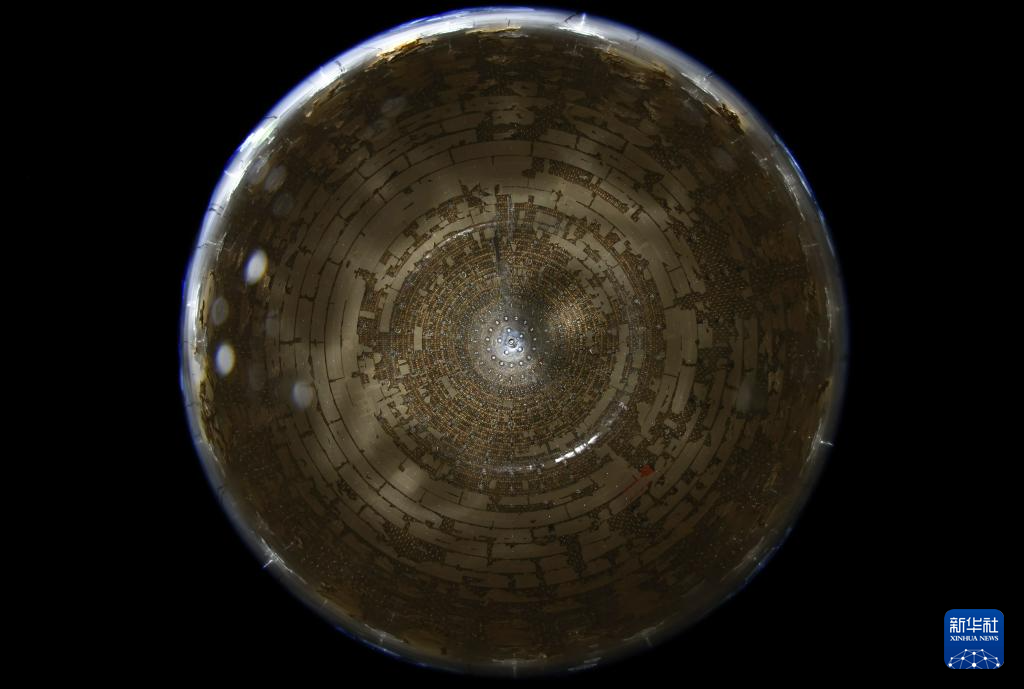 从江门中微子实验球底拍摄的中心探测器有机玻璃球(2024年11月22日摄)。新华社记者 金立旺 摄