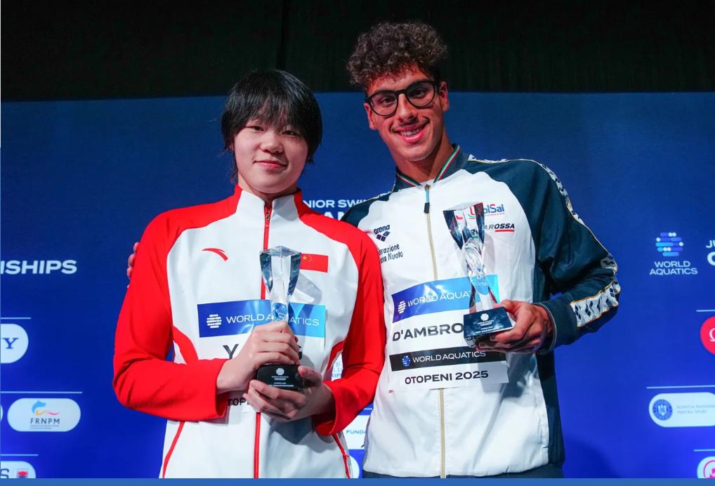 杨佩琪和意大利选手卡洛斯·安布罗希奥分获赛事最佳男、女运动员(MVP)。世界泳联官网图片