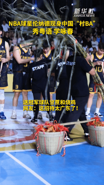 比赛结束 伦纳德送冠军球队甘蔗和烧鸡