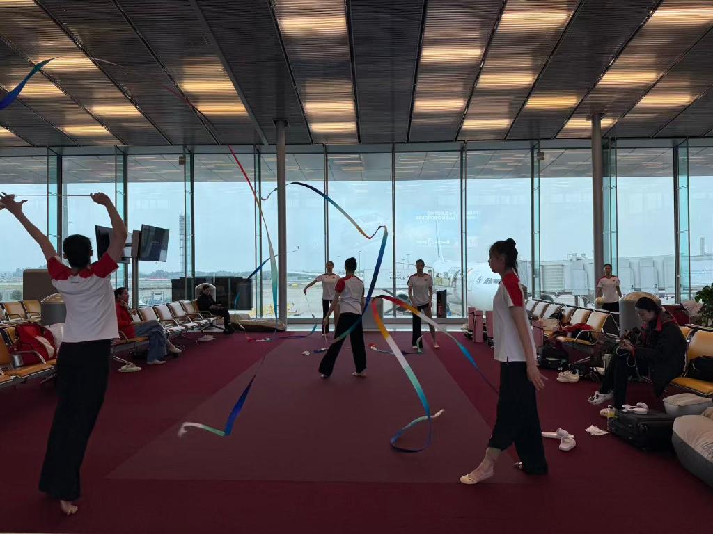 事实上,这样的困难,队伍在出征前就有所准备。教练组和队员们时刻专注,“一心只想着比赛”。利用转机的间隙,队员们还进行了一场“巴黎机场秀”,引来众多观众驻足称赞。