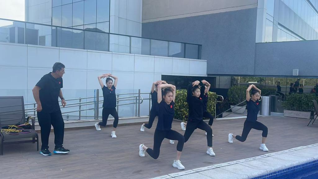 “我们解锁了很多新的训练场地,机场、游泳池,还有篮球场。”队员丁欣怡说。因为赛程紧张,到达的第一天,没有被安排训练场地的中国队只能在酒店“见缝插针”地训练。