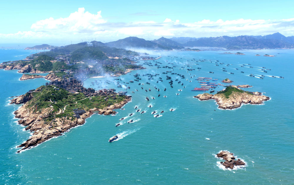 8月16日,在福建省福州市连江县苔菉国家中心渔港,众多渔船扬帆出海。新华社发(王旺旺摄)