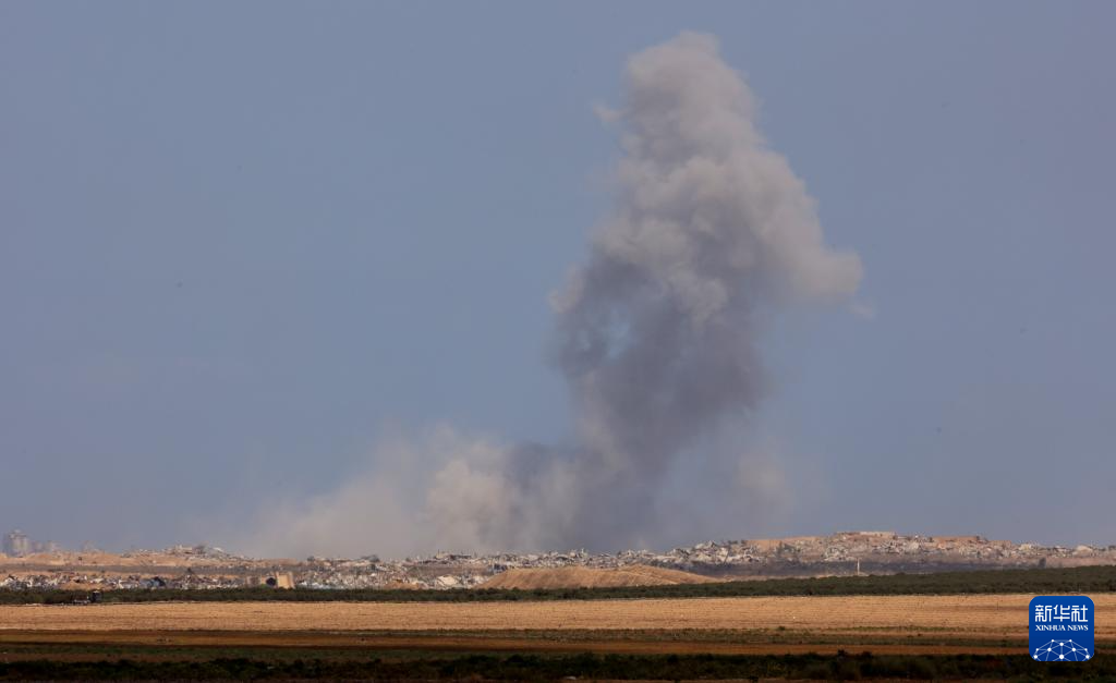 这是8月28日从加沙边境以色列一侧拍摄的加沙地带遭袭后升起浓烟。新华社发(吉尔·科恩·马根摄)